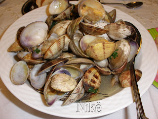 Ponemos el aceite en una cazuela y freímos la guindilla. La retiramos. Freímos los ajos ligeramente en el aceite y añadimos las almejas y les damos un buen meneo. Les echamos un buen chorro de Pedro Ximenez, un poco de sal y el cilantro picado. Removemos y ponemos una tapadera. Hay que menear bien las almejas para que se abran bien todas, que pueden tardar unos 5-7 minutos. Antes de servir rectificar la sazón.